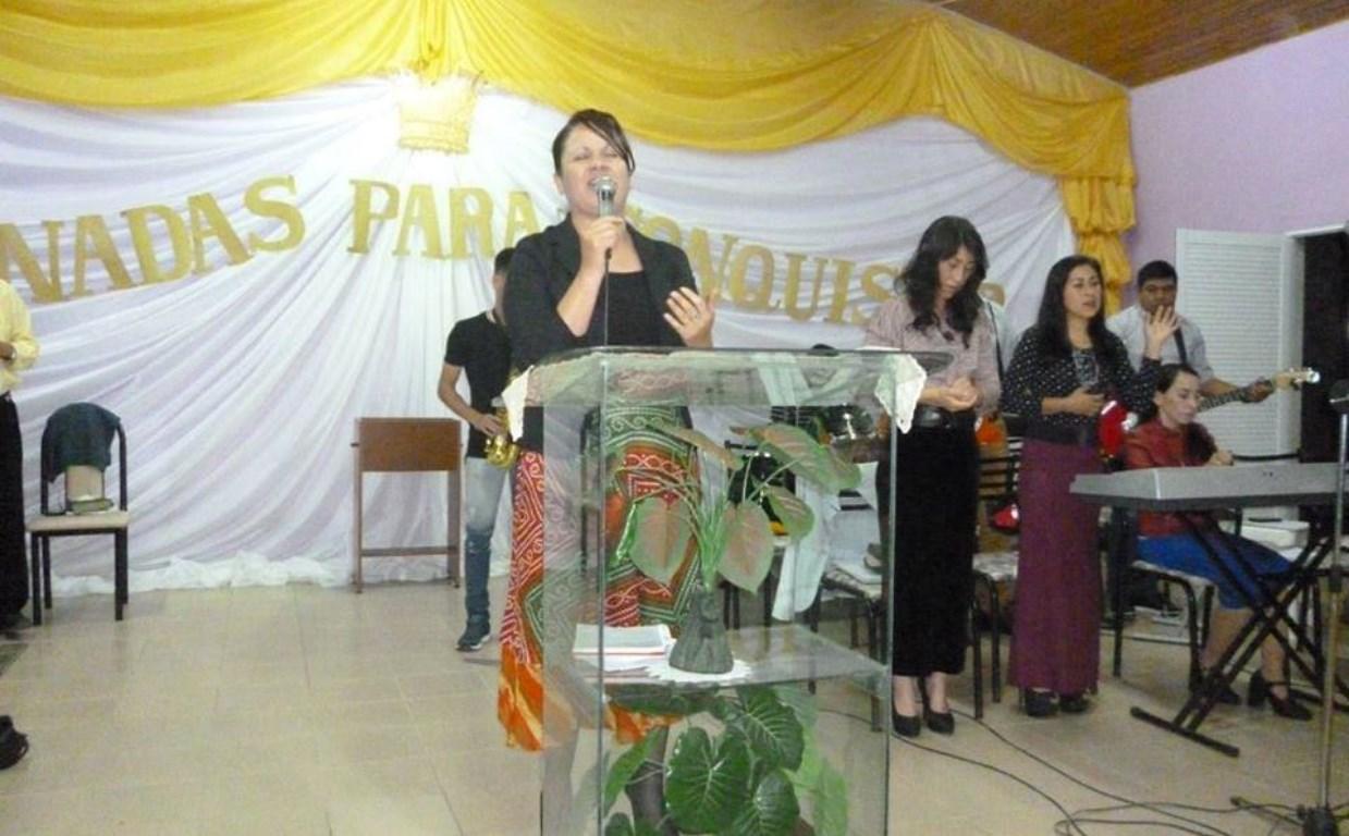 Débora Corbalán de las Buenas Nuevas ministrando