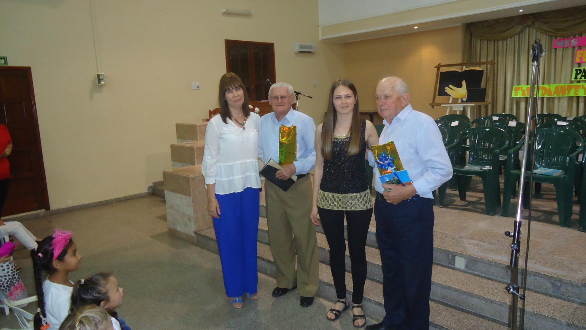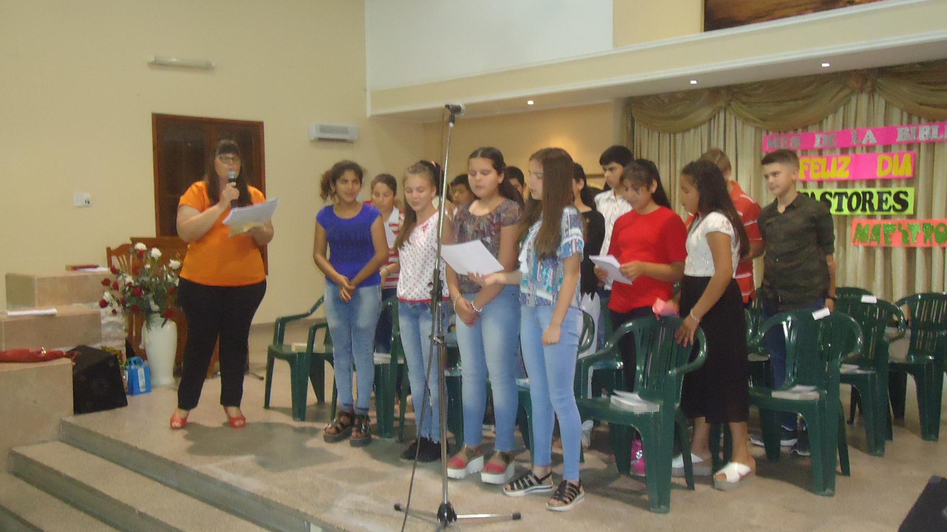 pastores de la Congregación Evangélica Cristiano Pentecostal de la calle Independencia fue el que se le tributó en el último domingo del mes de septiembre, coincidentemente con el mes de la Biblia y días de la primavera, del estudiante, del maestro y del pastor. El evento lo realizó el Departamento de Escuela Dominical y un lleno total fue el marco que engalanó la celebración . Coordinó Viviana Nowosad y en la apretura leyó en Hebreos 1: 1-2 y 13:17. Participaron los alumnos de la escuela mencionada y el cierre de la reunión estuvo a cargo de Vladimir Pietrovich. Finalizada la misma los presentes compartieron un social.